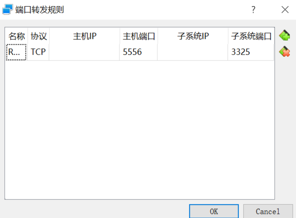 这样配置之后主机直接连接192.168.56.1:5556会自动转发到虚拟机的3325端口
