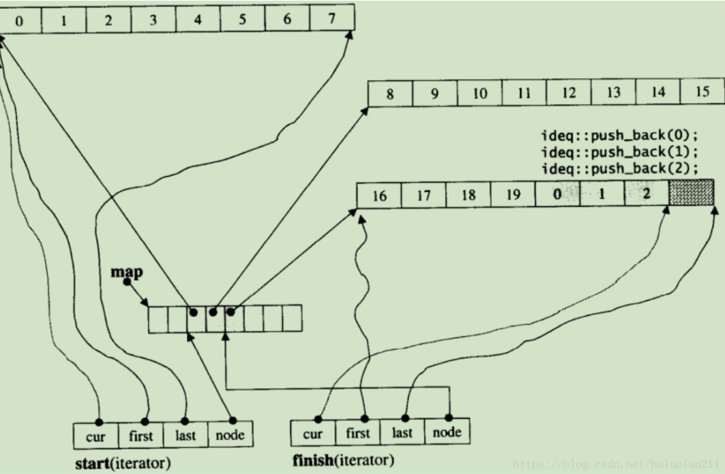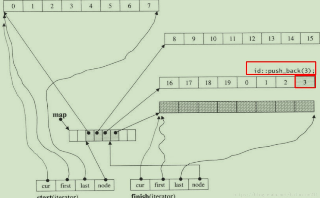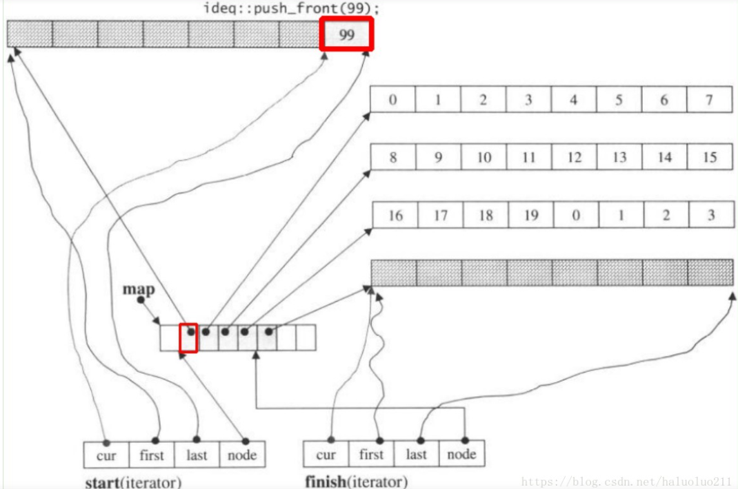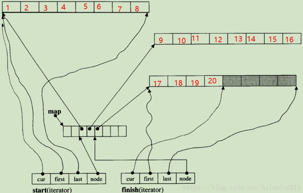 destory(start.cur,finish.cur); //将此唯一缓冲区内所有元素析构,并保留缓冲区