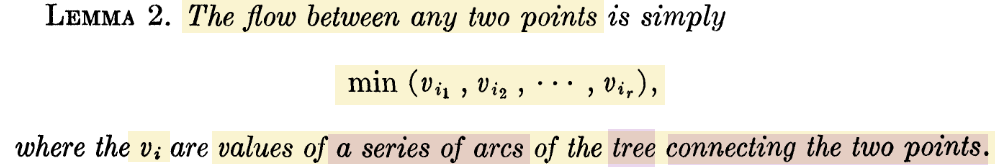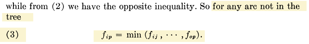 证明过程中提出:以fij作为边Bij的权重构造一棵最大生成树,对于任意一条不在该树上的边ip,i到p的最大流 等于 该树上i到p(唯一)的路径的minflow