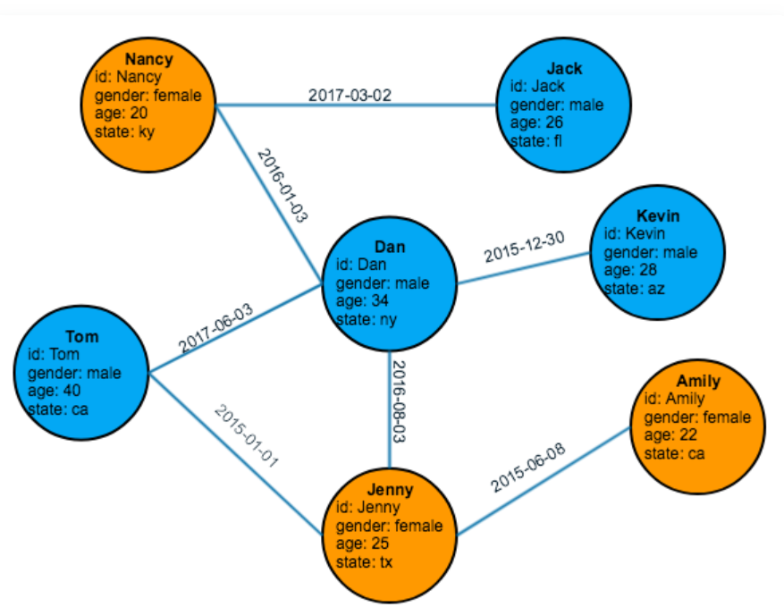 a graph showing a group of friends and when each of them met