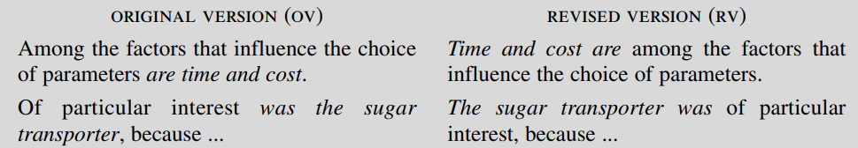 S1 shows an example of this order.S1. The researchers sent their manuscript to the journal.