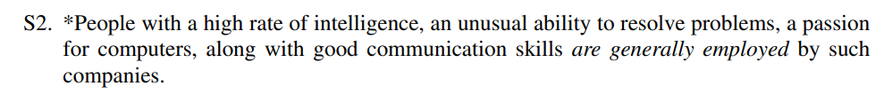 Shorter sentences are often obtained by using active (S2) rather than passive (S1)