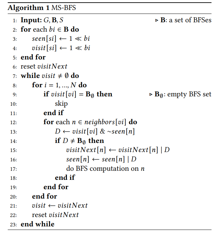 Algorithm A is shown in list \ref{alg:msbfs}.